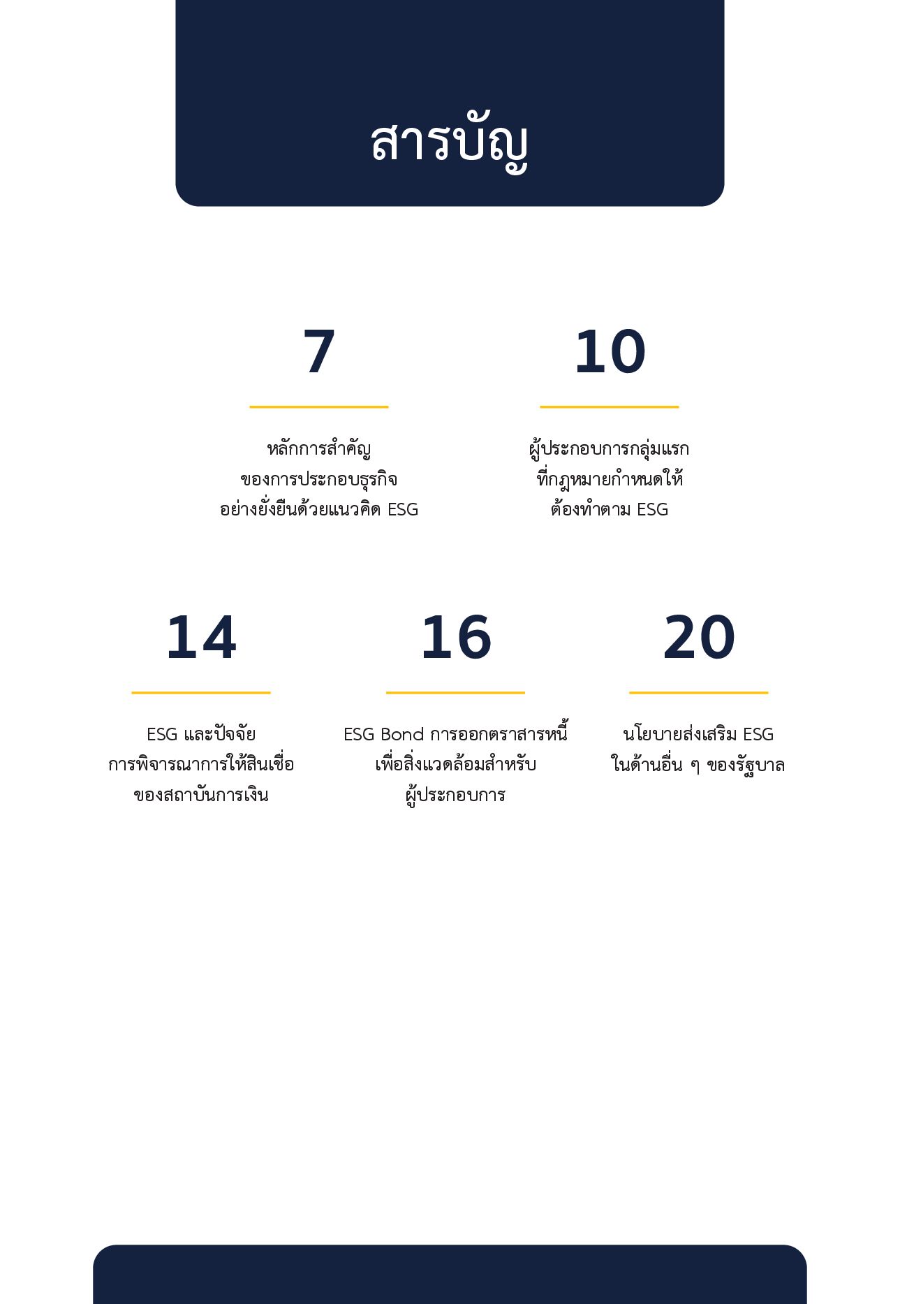 แนวคิด ESG (Environmental, Social, Governance) กลายเป็นปัจจัยสำคัญในการขับเคลื่อนธุรกิจในปัจจุบัน หนังสือเล่มนี้ได้รวบรวมสาระสำคัญที่ผู้ประกอบการควรรู้เกี่ยวกับธุรกิจ ESG ทั้งหลักการดำเนินธุรกิจอย่างยั่งยืน ข้อกำหนดจากหน่วยงานที่กำกับดูแล สิทธิประโยชน์ทางภาษีที่เกี่ยวข้อง และแนวทางการระดมทุนผ่าน ESG Bond เพื่อให้ทั้งบริษัทจดทะเบียนในตลาดหลักทรัพย์ SMEs และ Start-up ใช้เป็นแนวทางในการสร้างความยั่งยืนพร้อมต่อยอดสู่โอกาสทางธุรกิจ