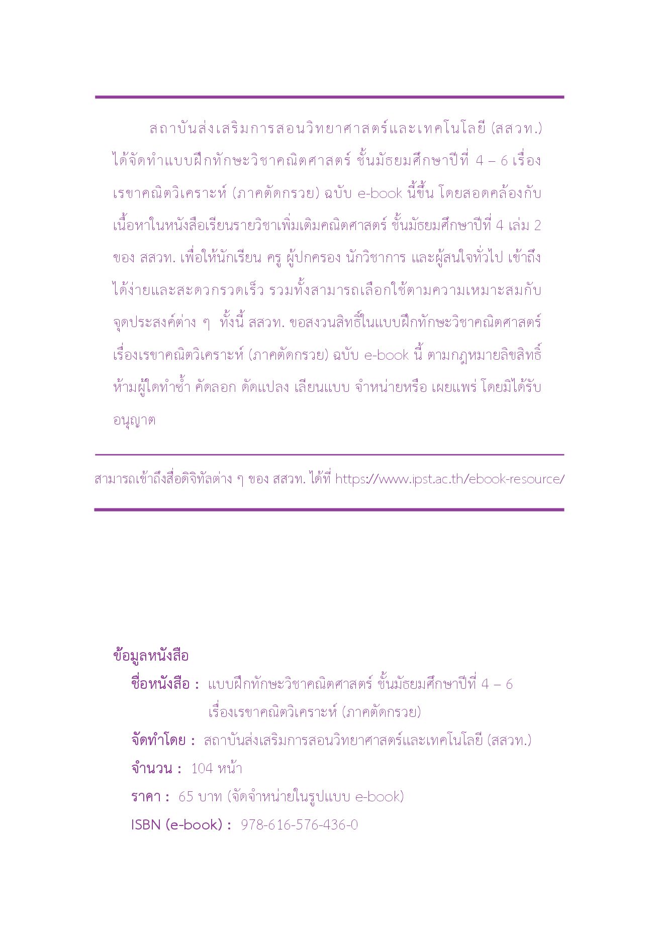 - สำนักพิมพ์ : สถาบันส่งเสริมการสอนวิทยาศาสตร์และเทคโนโลยี (สสวท.)