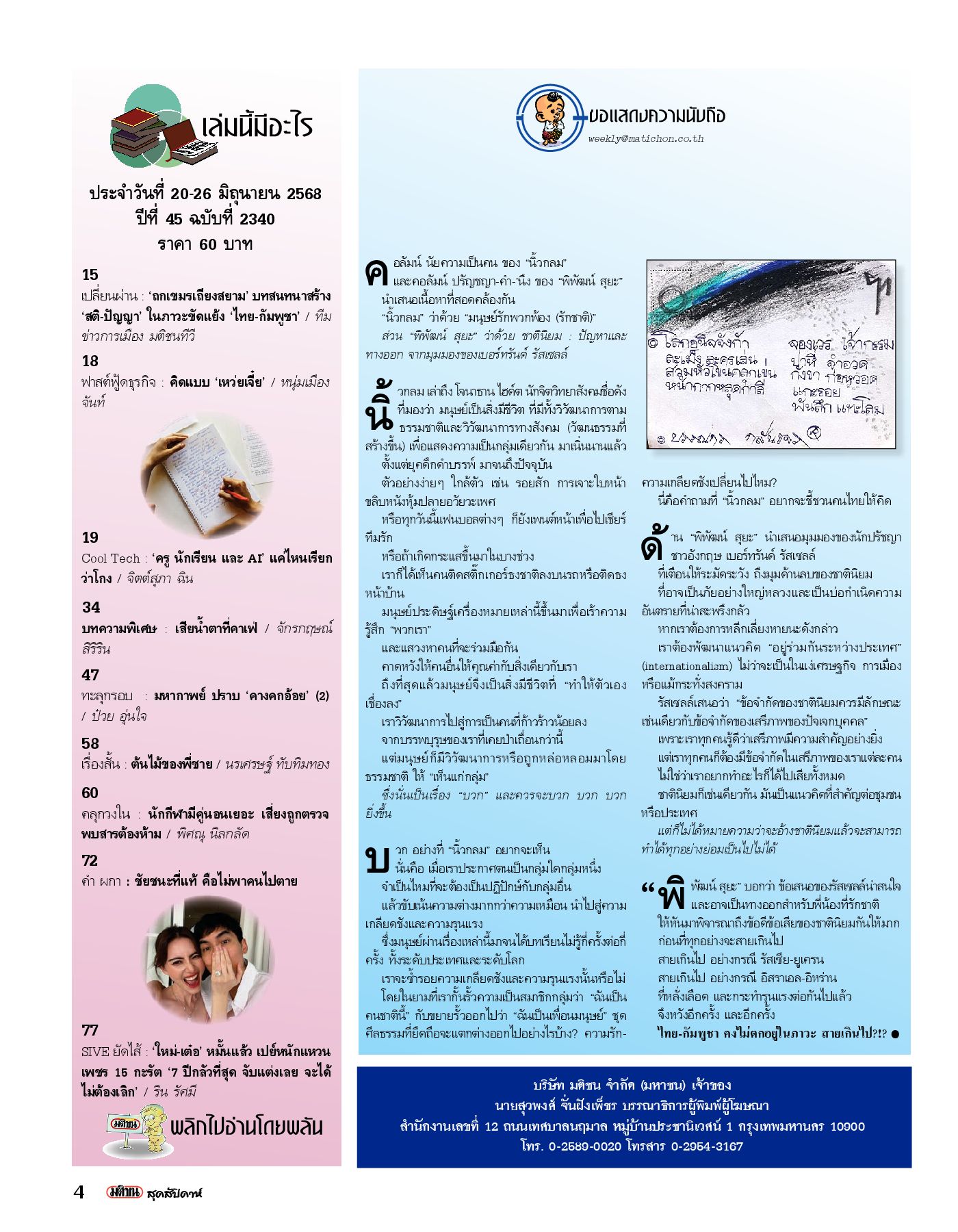มติชนสุดสัปดาห์ ฉบับ 2340 (วันที่ 20-26 มิถุนายน 2568)