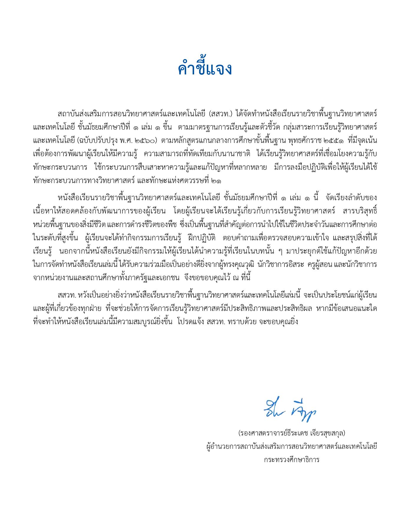 หนังสือเรียนรายวิชาพื้นฐานวิทยาศาสตร์และเทคโนโลยี ม.1 เล่ม 1