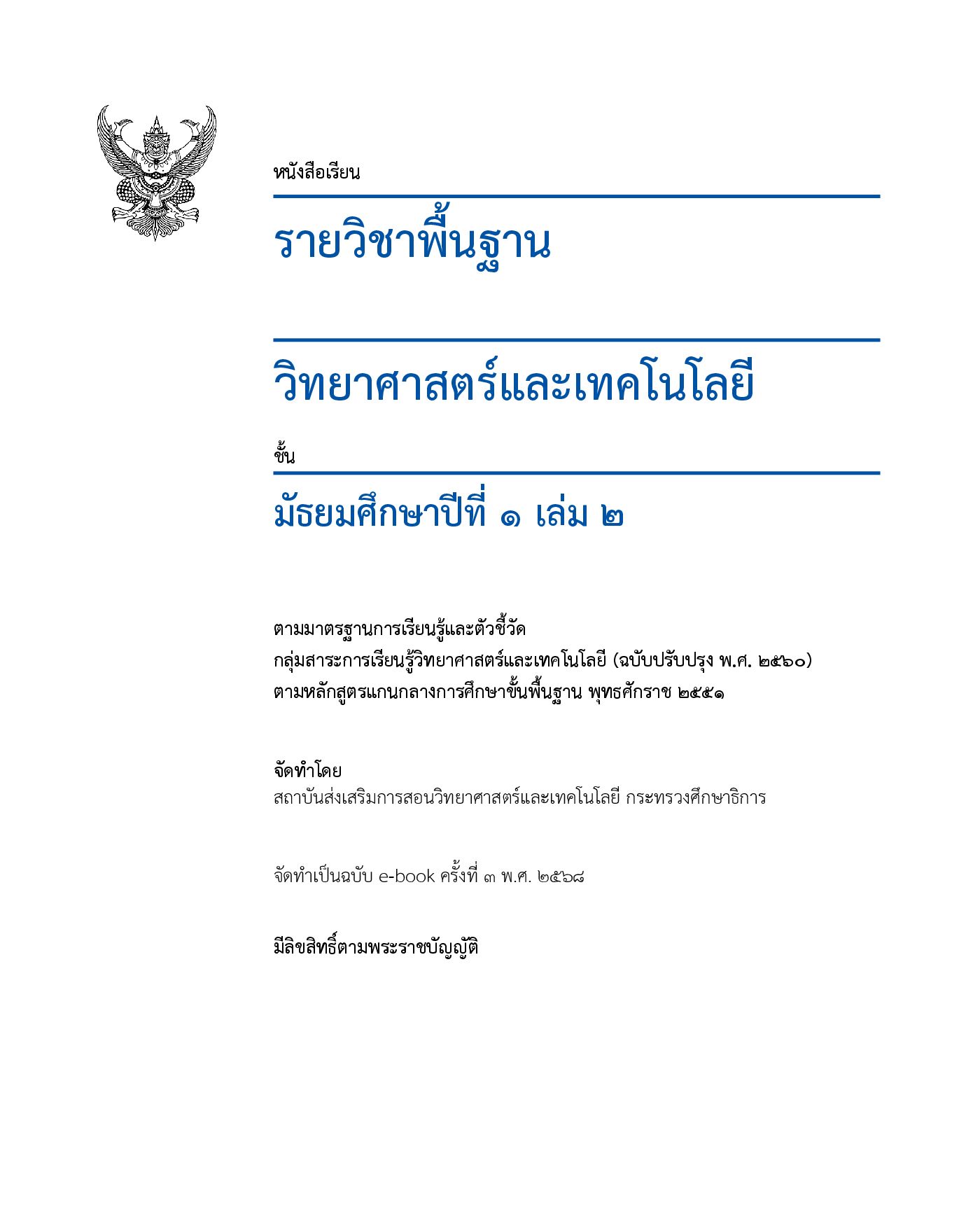 หนังสือเรียนรายวิชาพื้นฐานวิทยาศาสตร์และเทคโนโลยี ม.1 เล่ม 2