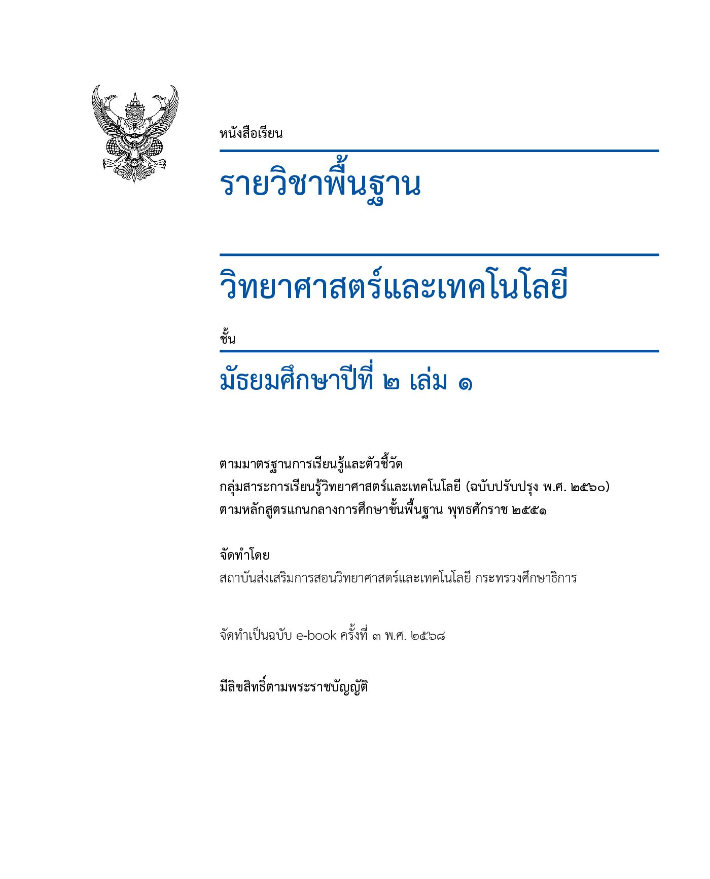 หนังสือเรียนรายวิชาพื้นฐานวิทยาศาสตร์และเทคโนโลยี ม.2 เล่ม 1