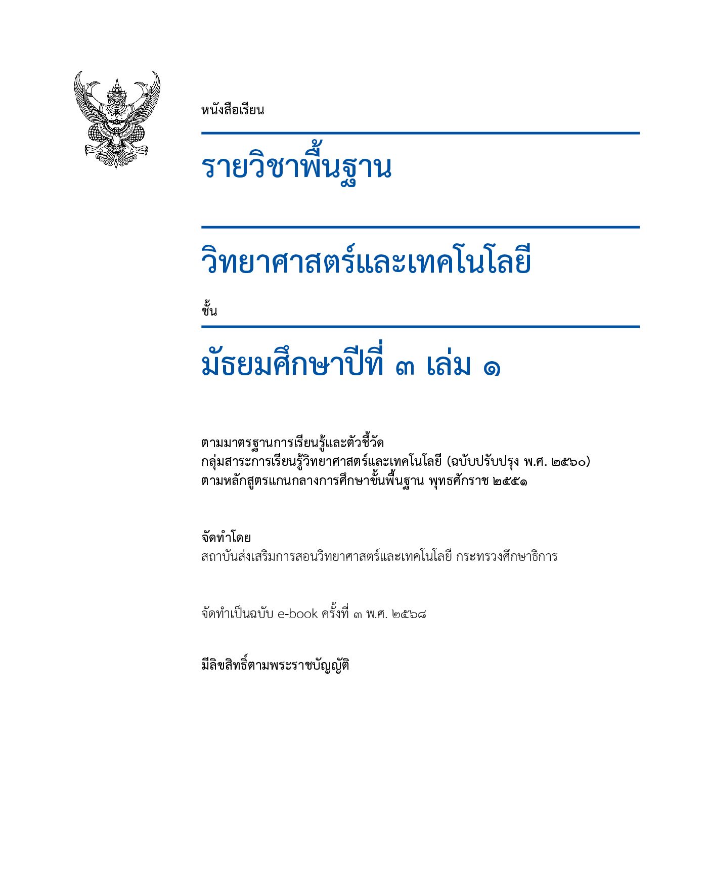 หนังสือเรียนรายวิชาพื้นฐานวิทยาศาสตร์และเทคโนโลยี ม.3 เล่ม 1