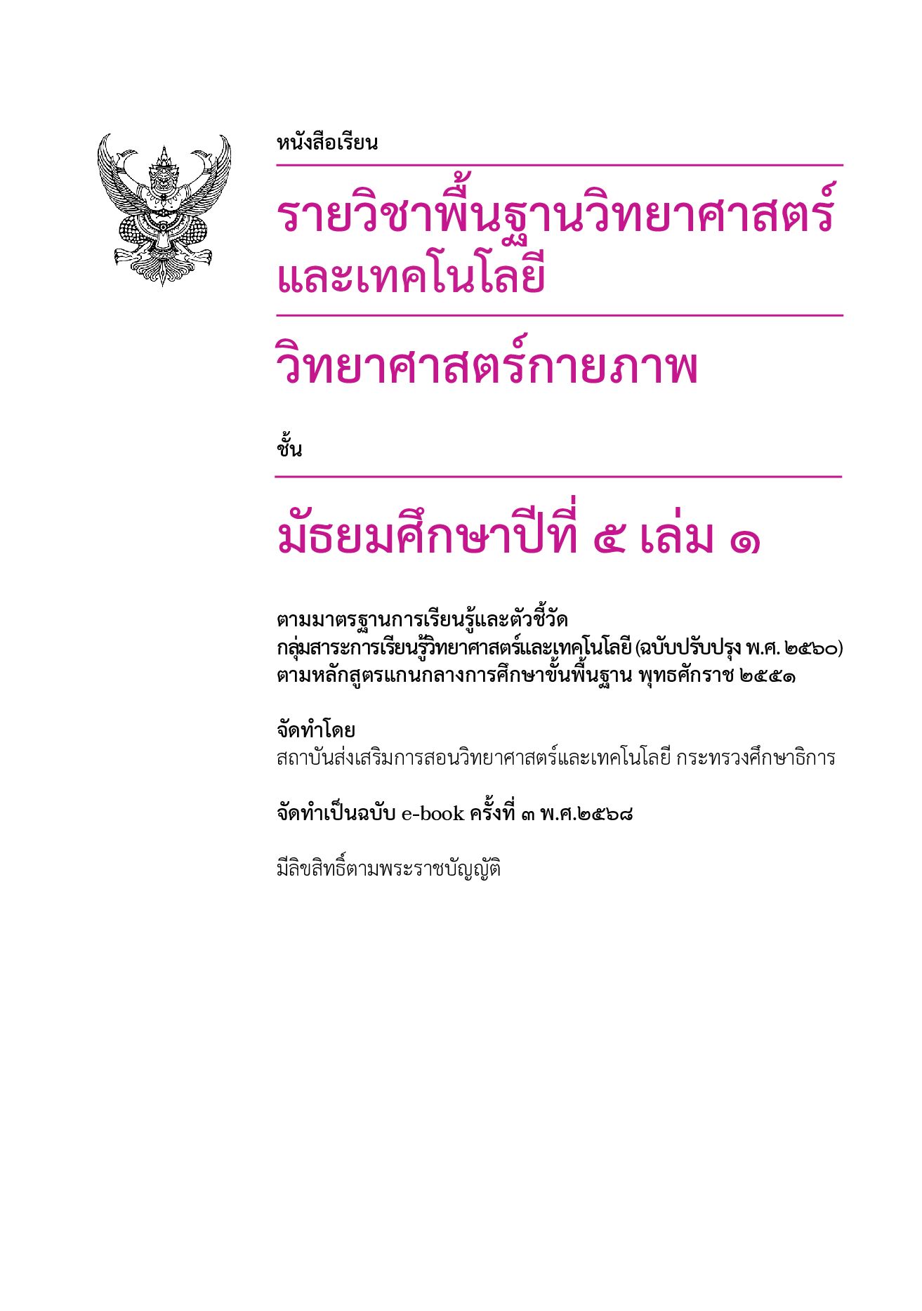 หนังสือเรียนรายวิชาพื้นฐานวิทยาศาสตร์และเทคโนโลยี วิทยาศาสตร์กายภาพ ม.5 เล่ม 1