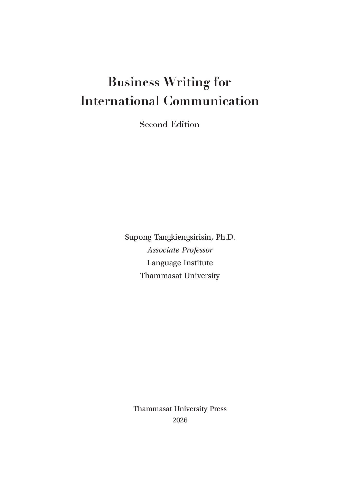 This book, Business Writing for International Communication, aims to help learners of English sharpen their business writing skills. The focus of this book is on principles, guidelines, and techniques for writing emails, letters, or memos in business-related contexts. Consisting of eight chapters, this course book starts with the basic principles of written business communication and continues to describe and justify the writing process. Subsequent to that is the discussion of the major types of business messages, including neutral and positive messages, negative messages, and persuasive messages. This book ends with a chapter on guidelines for business writing in intercultural settings.