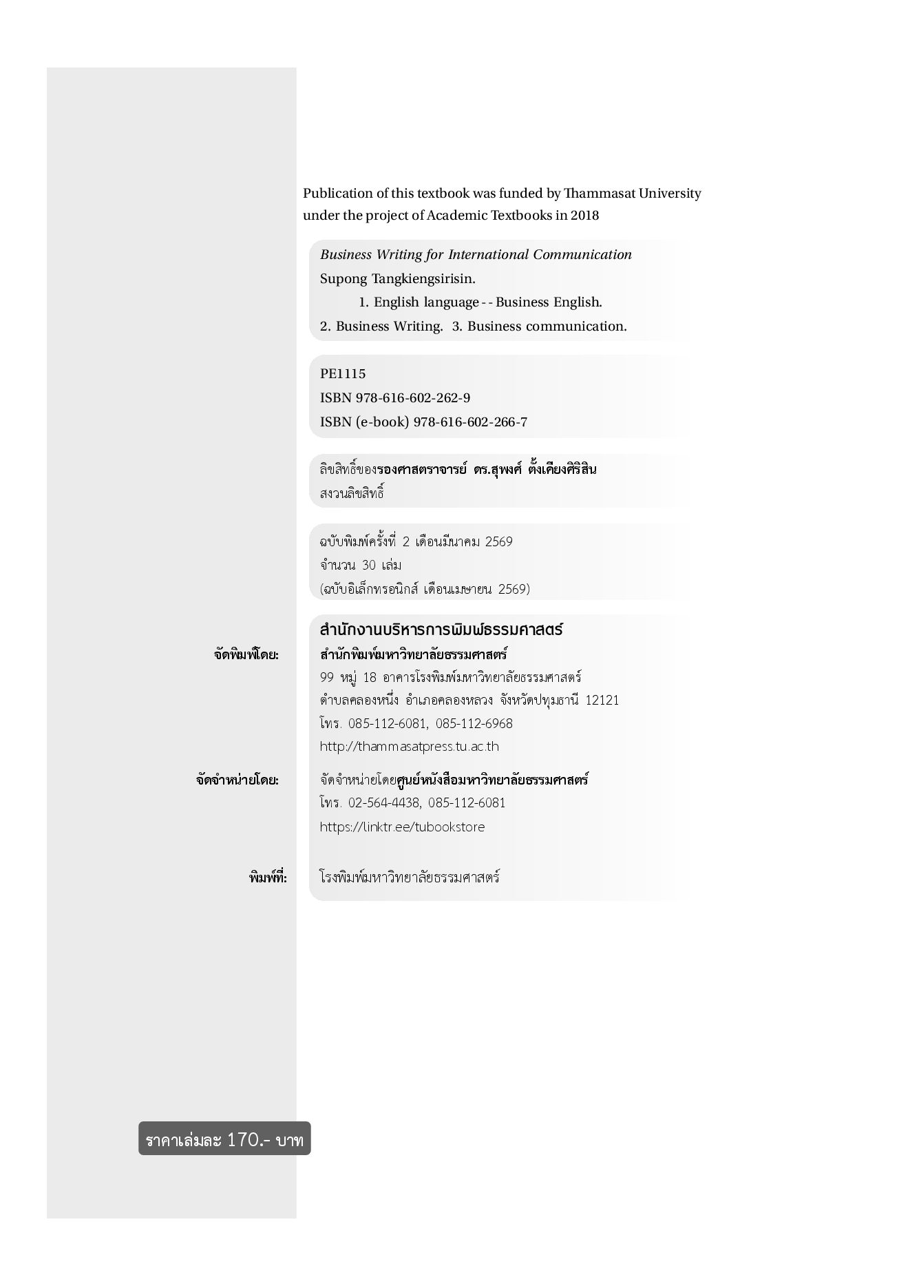 - สำนักพิมพ์ : สำนักพิมพ์มหาวิทยาลัยธรรมศาสตร์