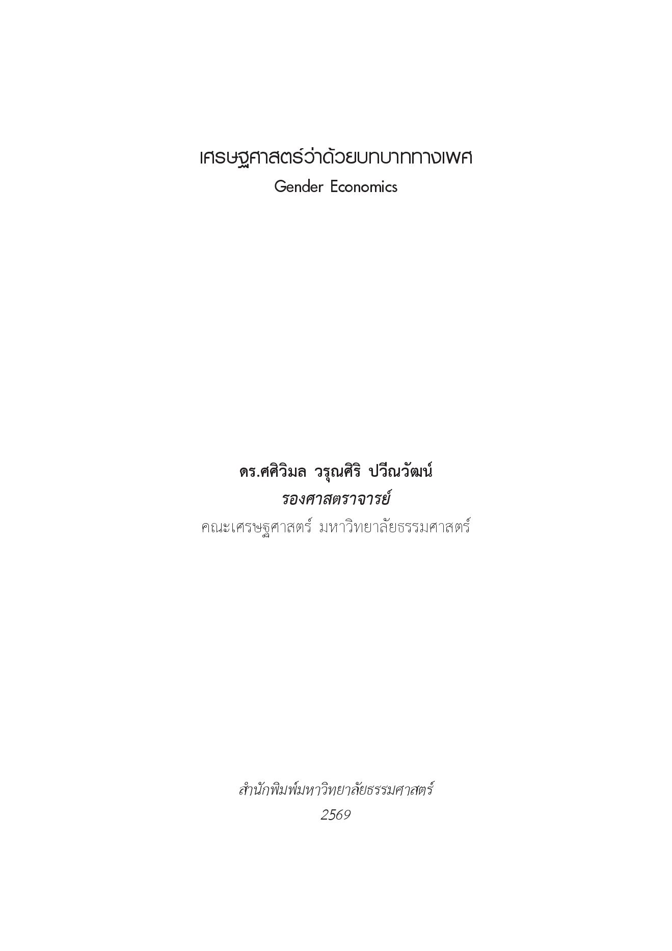 ตำราประกอบการเรียนวิชาบทบาทหญิงชายในระบบเศรษฐกิจในระดับปริญญาตรี คณะเศรษฐศาสตร์
