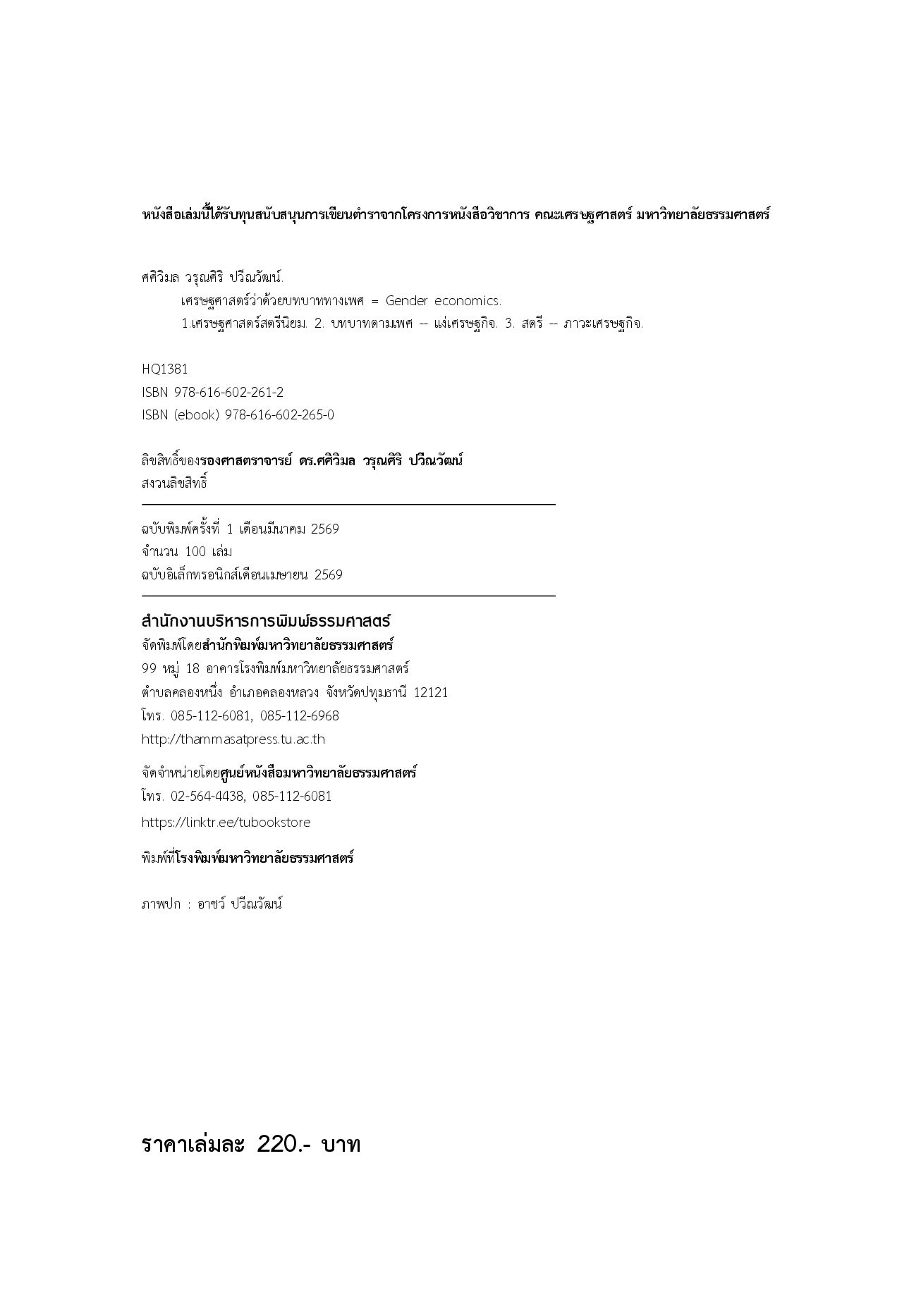 - สำนักพิมพ์ : สำนักพิมพ์มหาวิทยาลัยธรรมศาสตร์