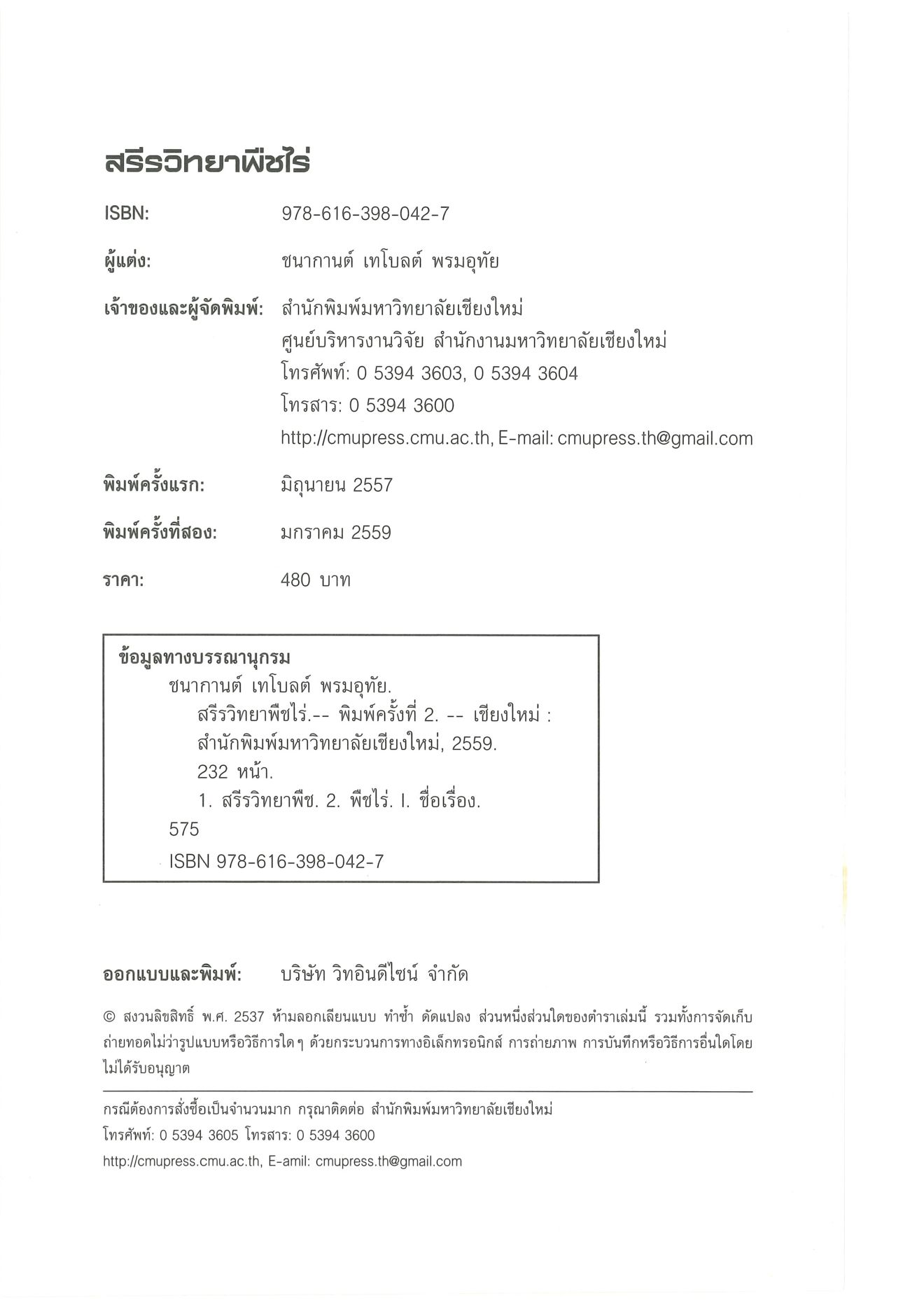 - สำนักพิมพ์ : CHIANG MAI UNIVERSITY PRESS