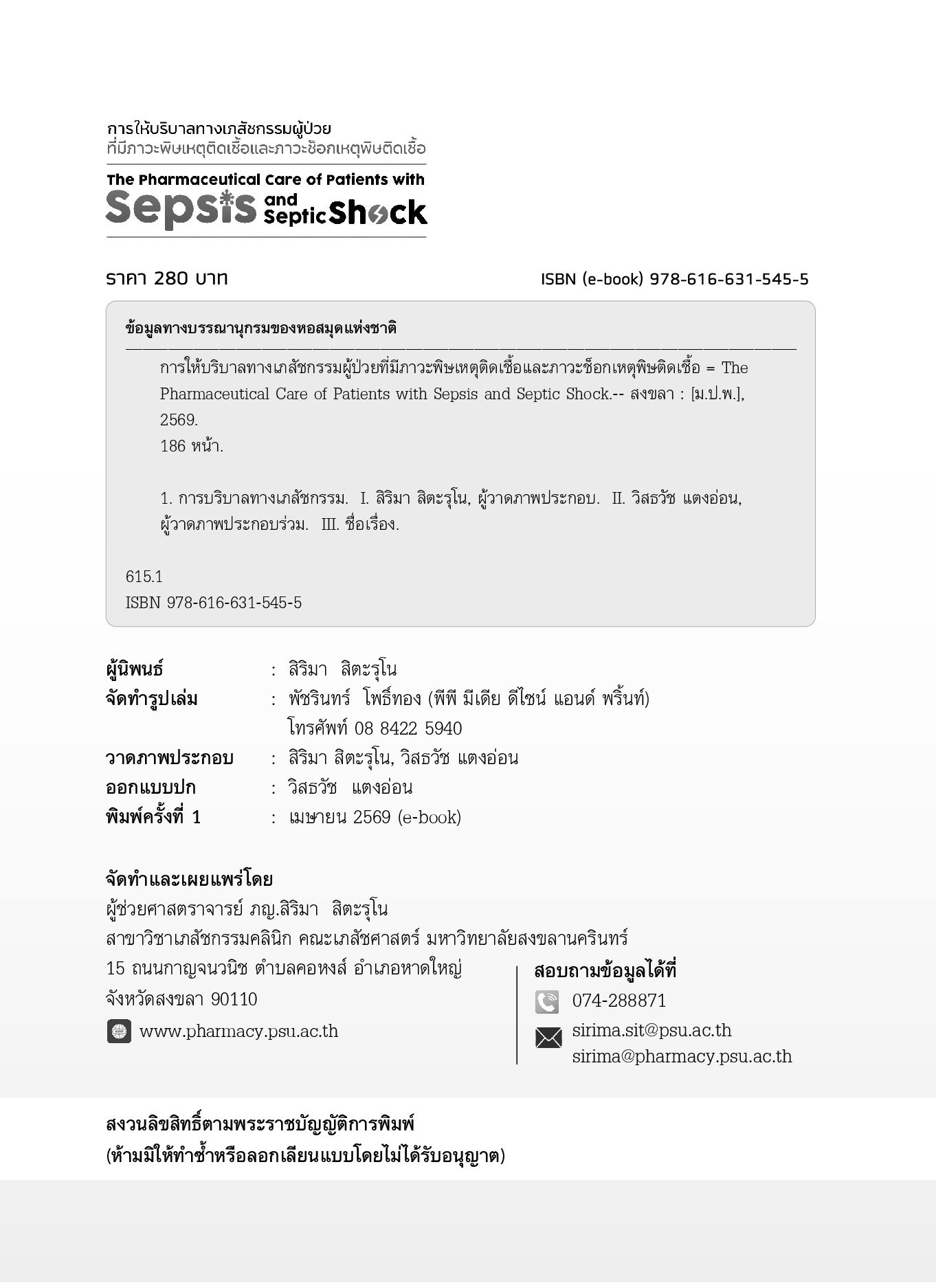 - สำนักพิมพ์ : ผู้ช่วยศาสตราจารย์ ภญ.สิริมา สิตะรุโน
