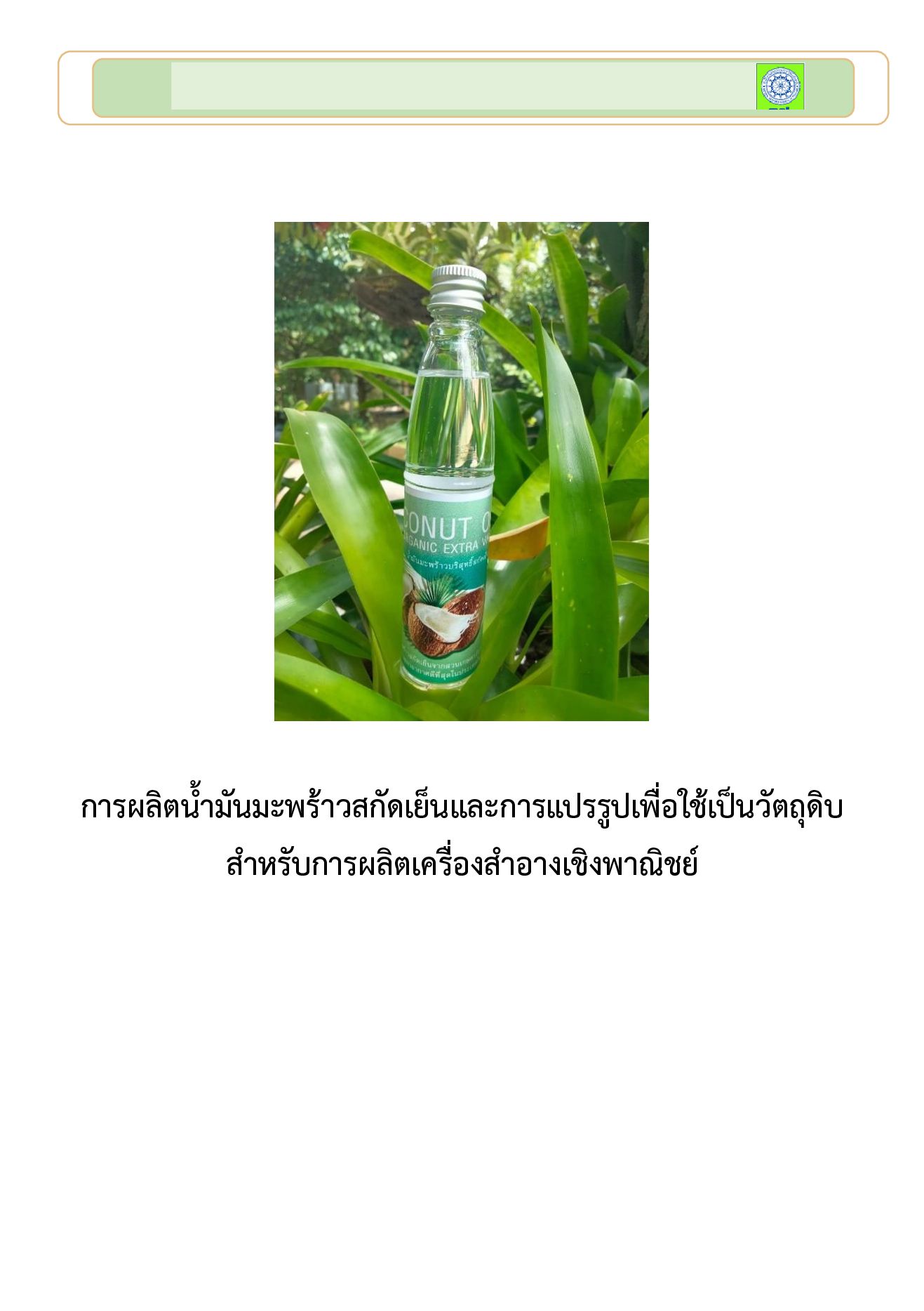 การผลิตน้ํามันมะพร้าวสกัดเย็นและการแปรรูปเพื่อใช้เป็นวัตถุดิบ สําหรับการผลิตเครื่องสําอางเชิงพาณิชย์