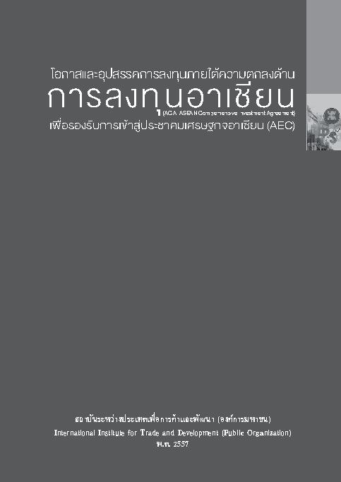 โอกาสและอุปสรรคการลงทุนภายใต้ความตกลงด้านการลงทุนอาเซียน เพื่อรองรับการเข้าสู่ประชาคมเศรษฐกิจอาเซียน (AEC) : ITD