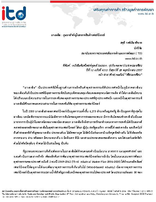 มาเลเซีย : คู่แข่งสำคัญในตลาดสินค้าเฟอร์นิเจอร์