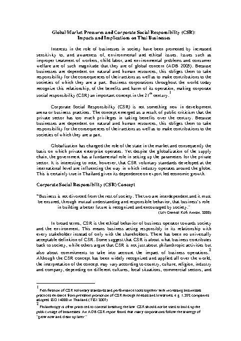 Global Market Pressures and Corporate Social Responsibility (CSR): Impacts and Implications on Thai Businesses