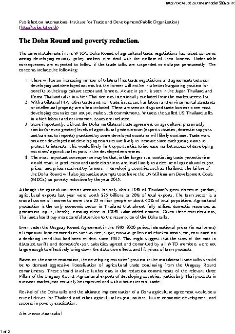 บทความวิจัยของสถาบันระหว่างประเทศเพื่อการค้าและการพัฒนา ITD